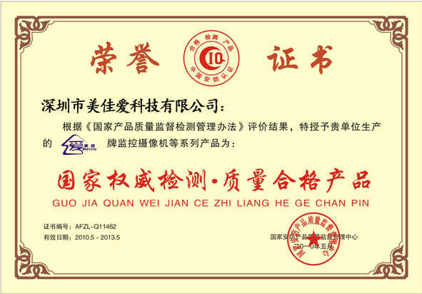 國家權(quán)威檢測(cè) 質(zhì)量合格產(chǎn)品證書副本